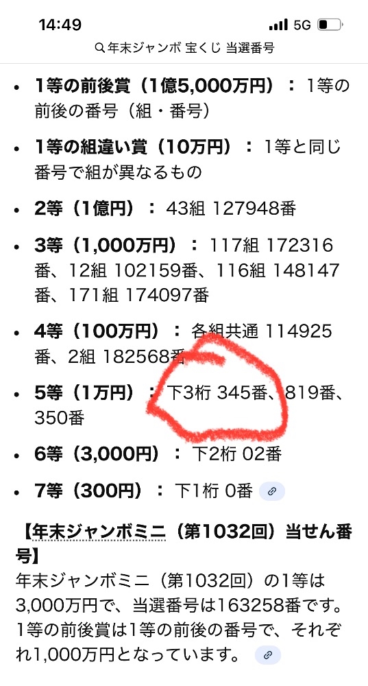 宝くじ、ハズレました。😁