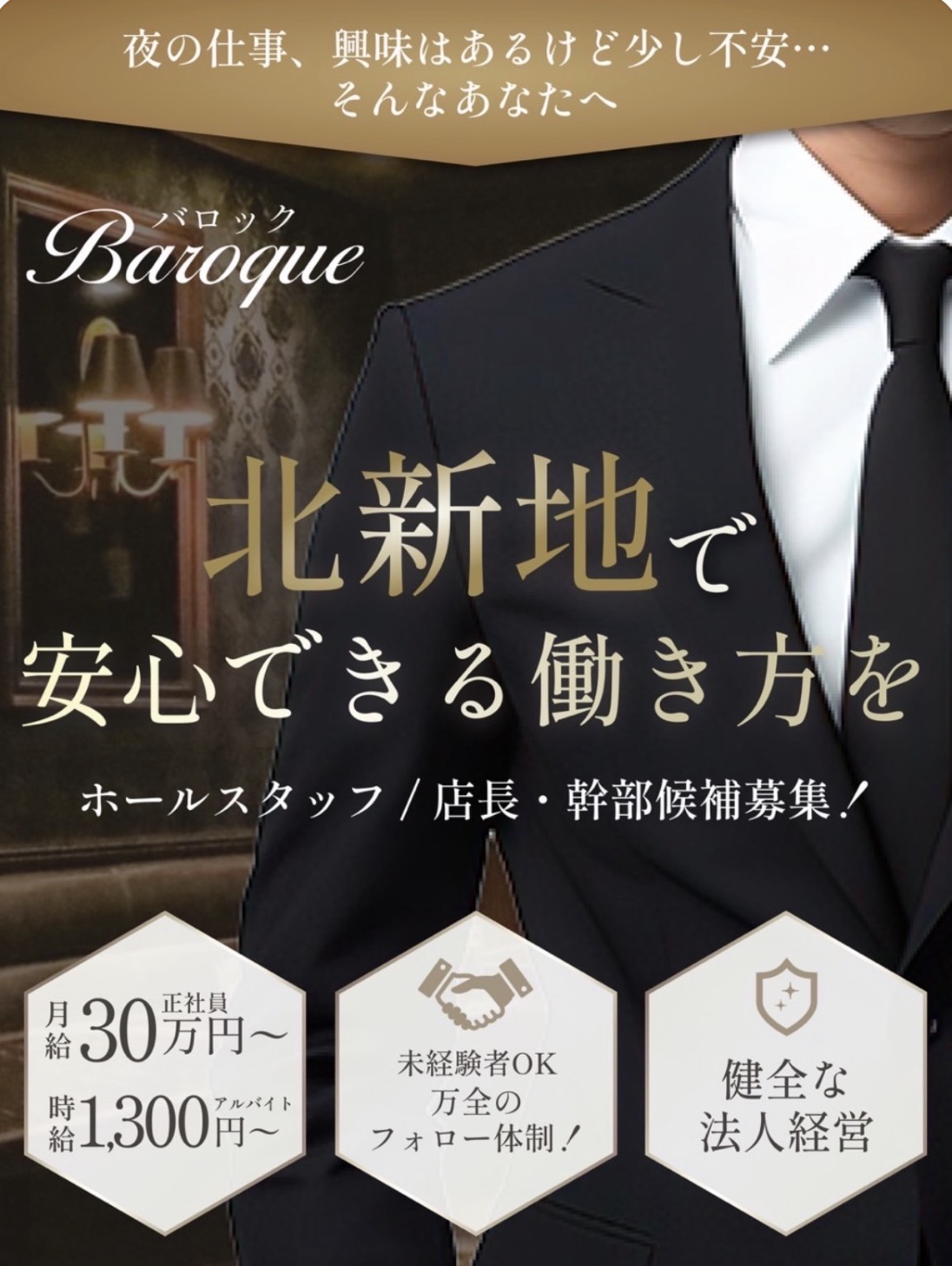 【男子正社員・アルバイト急募】夜の業界=怖い? 厳しい?そのイメージ、BAROQUEがくつがえします!